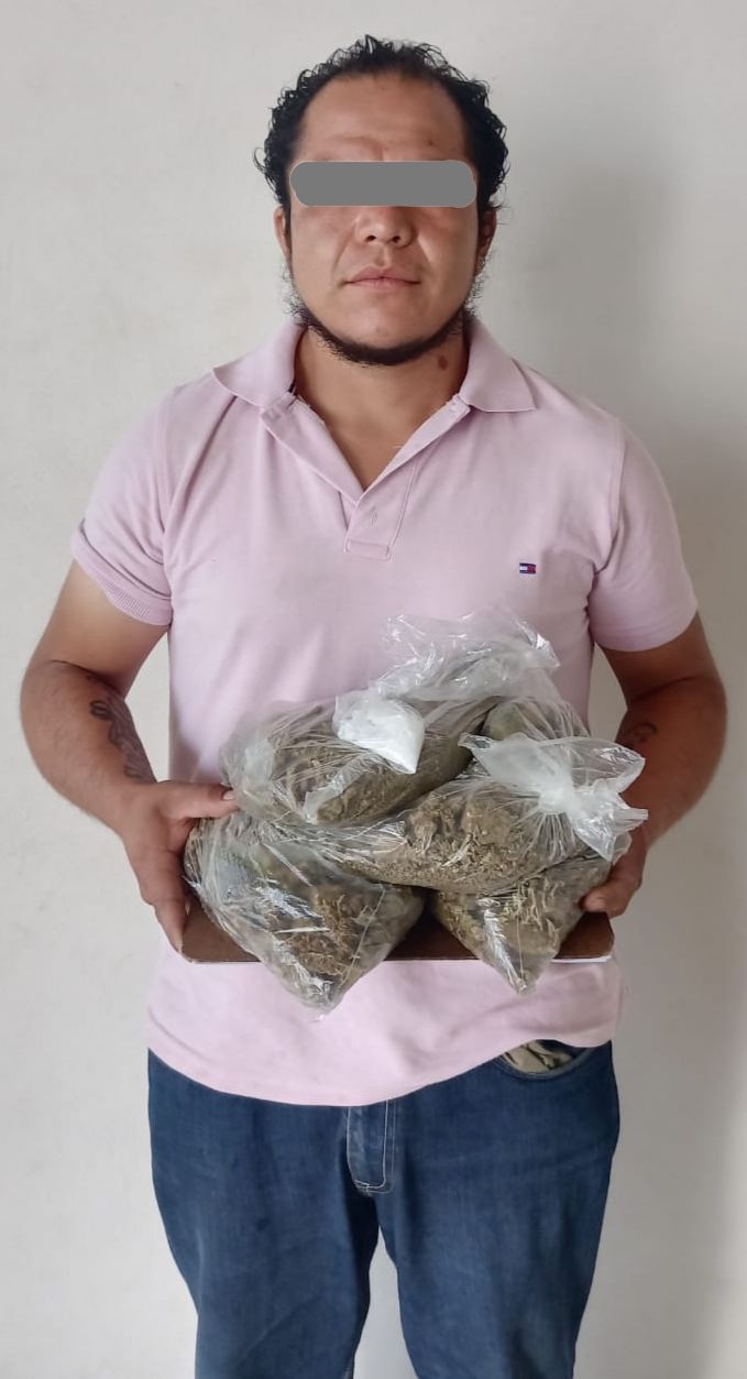 • Al detenido le fueron localizadas marihuana y metanfetamina durante una revisión preventiva.