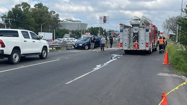 Un joven trabajador perdió la vida y otro más fue trasladado al hospital, luego de haber sido arrollados por un auto Jetta que circulaba a exceso de velocidad sobre los carriles laterales de 5 de Febrero en dirección a San Luis Potosí, a la altura del parque industrial Benito Juárez en la zona norte de la capital queretana.