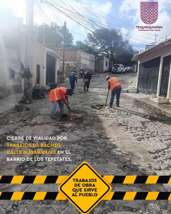 La administración municipal de Tequisquiapan, encabezada por el presidente Héctor Magaña, informó sobre el cierre temporal de la calle Bugambilias, en el Barrio de los Tepetates, debido a los trabajos de bacheo que realiza el área de Obras Públicas Municipales.