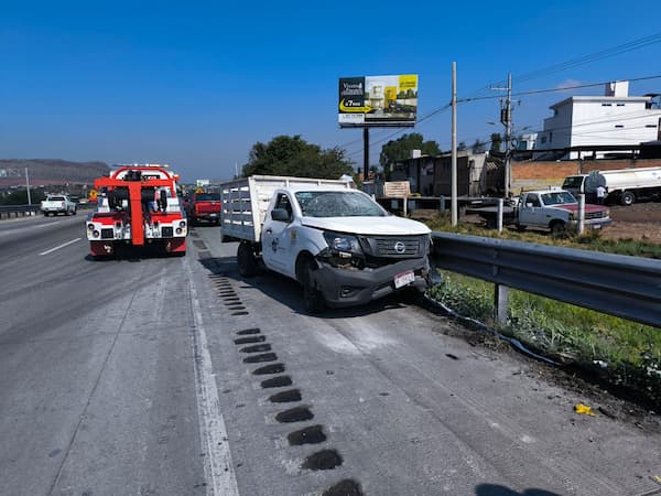 De acuerdo con los primeros reportes, el conductor de una camioneta que transportaba bultos de cal perdió el control del volante. En cuestión de segundos, la unidad se impactó contra la barra de contención.