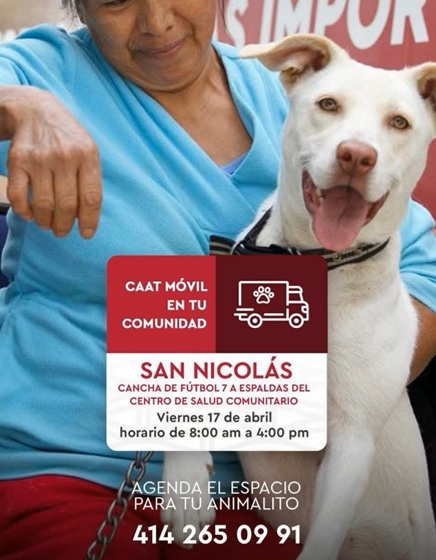 El viernes 17 de abril, en la cancha de fútbol ubicada a espaldas del Centro de Salud Comunitario en San Nicolás, se abrirá un espacio lleno de esperanza, donde familias y sus fieles compañeros podrán recibir atención de 8:00 de la mañana a 4:00 de la tarde.