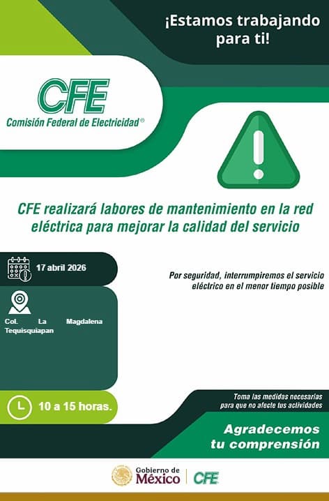 Más allá de la suspensión del servicio, esta jornada también representa una oportunidad de cercanía entre la ciudadanía y el personal de CFE. A partir de las 10:00 de la mañana, personal de la dependencia estará presente en el jardín principal para escuchar, atender dudas y dar seguimiento a las inquietudes de los vecinos.
